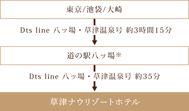 草津温泉のシンボル「湯畑」や「草津温泉バスターミナル」へは、無料送迎バスをご利用ください。